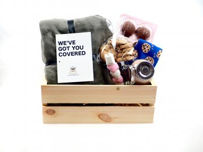 מארז לחורף חמים ונעים. כולל שמיכת פליז, גרביים מחממות, בקבוק מים חמים ועוד.